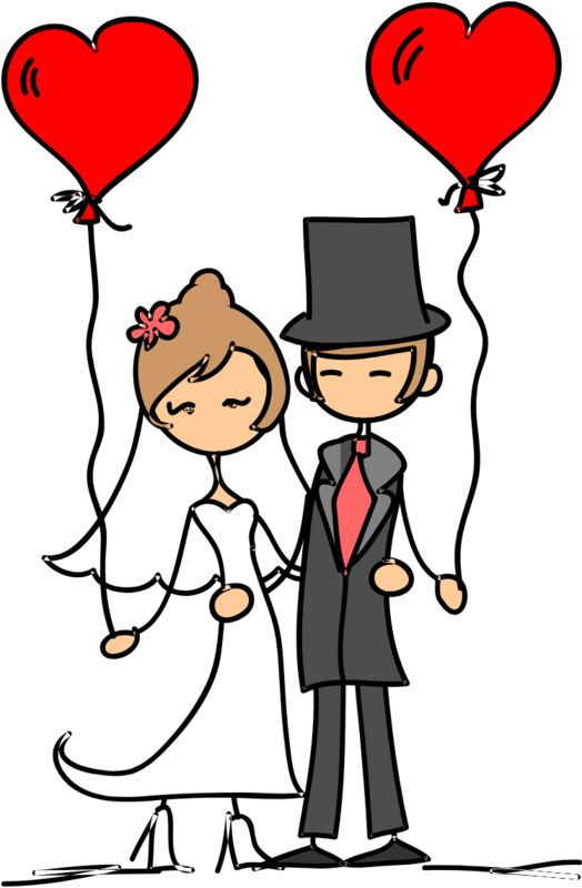 Cartoon Wedding Groom Bride Heart Balloons 4