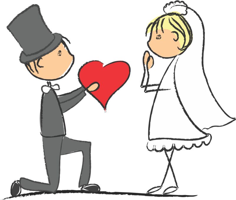 Cartoon Wedding Groom Bride Proposal 1